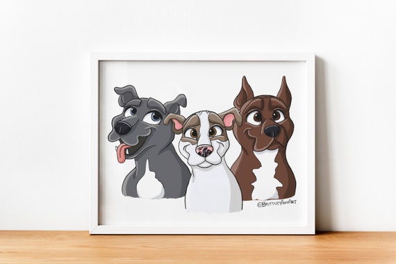 Pitbull Cartoon Dogs Art Print Gift Idea For Dog Lover Dog Mom Groomer Decor Nursery Wall Art Pitbull Drawing Gift Ideas For Pit Bull Lovers